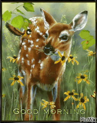 Deer In Grass Good Morning Gif